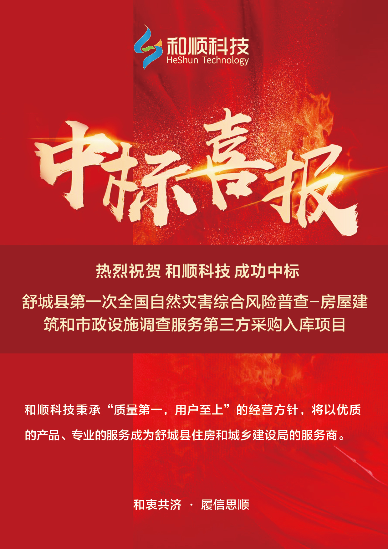近日,和順科技在“舒城縣第一次全國自然災(zāi)害綜合風(fēng)險普查--房屋建筑和市政設(shè)施調(diào)查