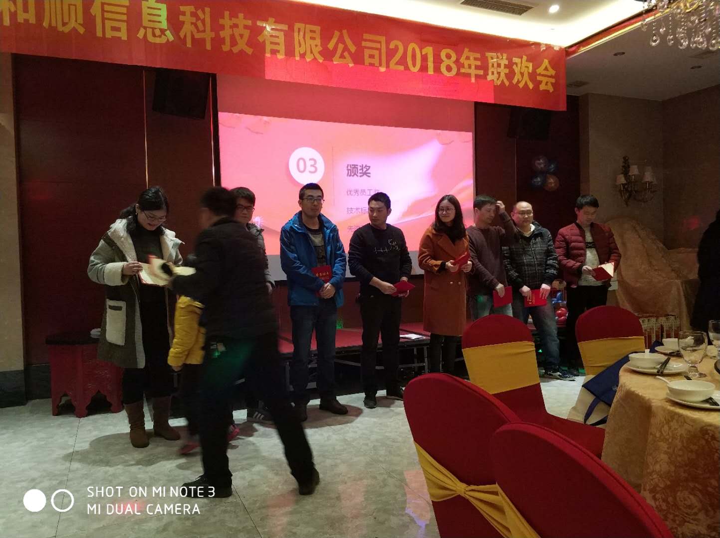 2018年2月10日合肥和順信息科技有限公司2018年聯(lián)歡會(huì)在尚爵宴會(huì)酒店圓滿結(jié)束!聯(lián)歡會(huì)以員工才藝展示 領(lǐng)導(dǎo)致詞 現(xiàn)場(chǎng)頒獎(jiǎng) 精彩游戲 晚宴等形式組成,現(xiàn)場(chǎng)總經(jīng)理張總現(xiàn)場(chǎng)對(duì)過去做了總結(jié),未來做了規(guī)劃,感恩大家,希望和順的未來越來越好?,F(xiàn)場(chǎng)還有綜合部的開場(chǎng)歌曲,明天會(huì)更好;外包部歌神的歌曲,銷售部精彩的現(xiàn)場(chǎng),惹來現(xiàn)場(chǎng)一片歡呼。大家也積極參與互動(dòng)游戲,除了這些,公司對(duì)2017年度的為公司奉獻(xiàn)的員工評(píng)出了優(yōu)秀員工4名 技術(shù)標(biāo)兵4名;綜合部也被評(píng)為“先進(jìn)集體稱號(hào)”。現(xiàn)場(chǎng)還抽取了一二三等獎(jiǎng),沒有獲得獎(jiǎng)項(xiàng)的朋友們也獲得的陽光普照獎(jiǎng)。大家吃著玩著拿著,晚宴結(jié)束后大家都開心的滿載而歸。聯(lián)歡會(huì)在一片歡笑海洋中圓滿結(jié)束了。