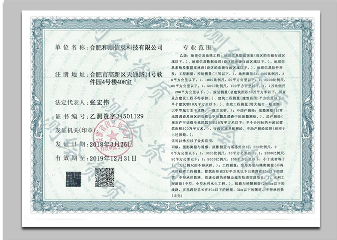 熱烈祝賀合肥和順測繪資質(zhì)成功升級成乙級!