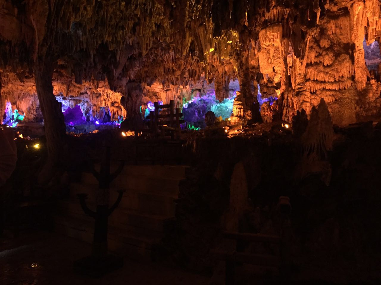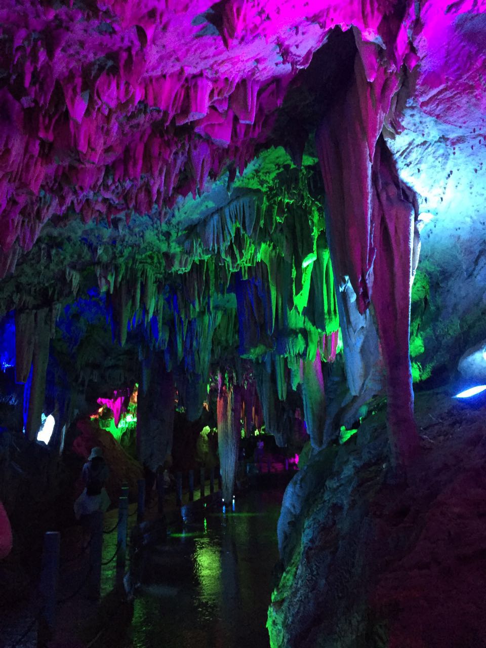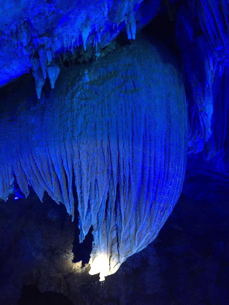 第二天,吃完早飯我們?nèi)チ俗显贫葱蕾p大自然的鬼斧神工,神奇的鐘乳石行成各種各樣的形狀,美不勝收。出了紫云洞,我們?nèi)チ俗砩揭埃L(fēng)景十分迷人,很多壯觀的瀑布,真是飛流直下三千尺,疑似銀河落九天呀。醉山野里的空氣很清晰,果真有天然氧吧的美譽(yù),我們還走了玻璃棧道,隔著透明玻璃俯身向下全是樹木,綠油油一片。放佛踏入空中的感覺。醉山野的路是山路,我們一起說著笑著 ,一起爬著山,十分開心。