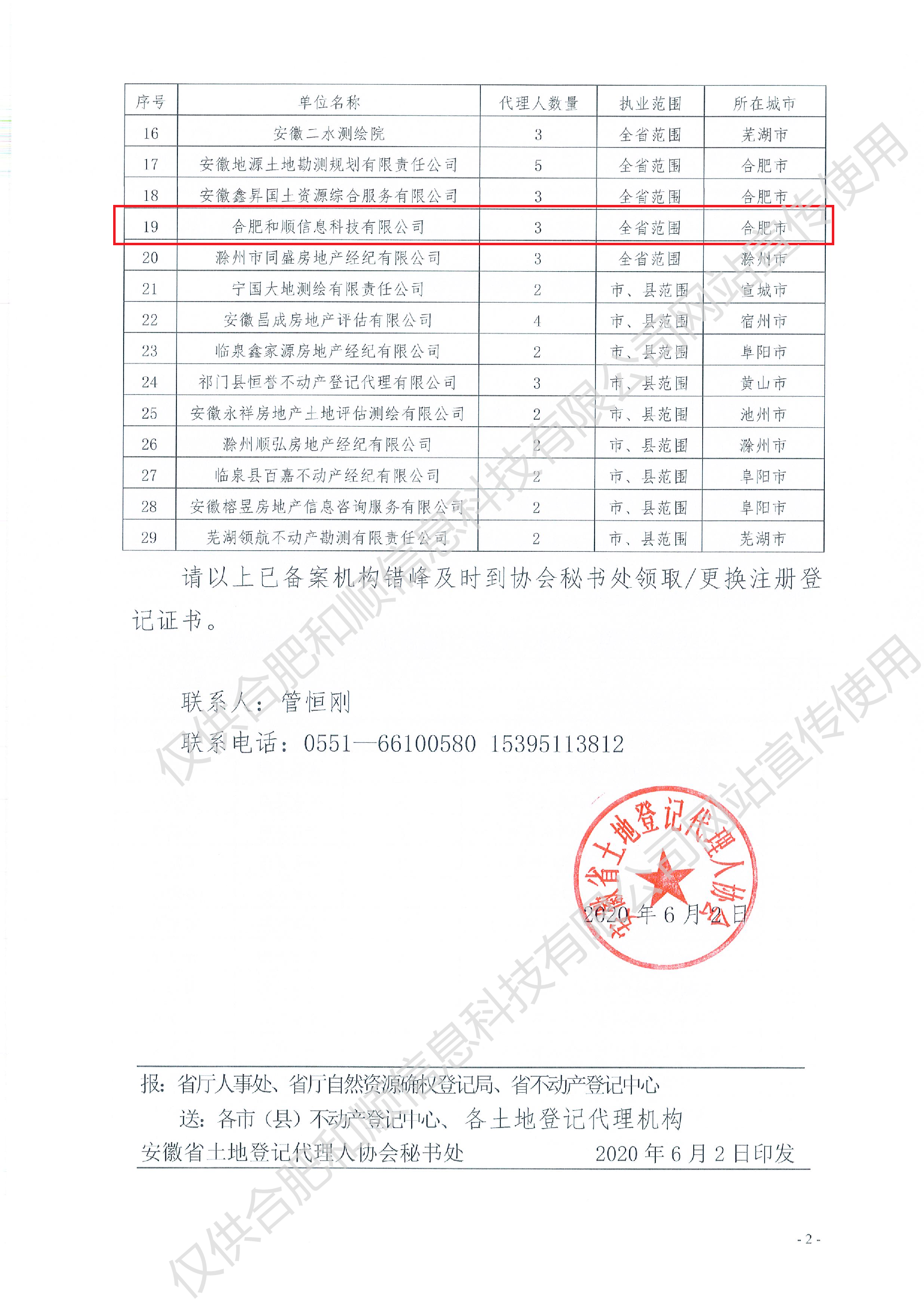 近日,和順科技再傳喜訊,成功通過2020年第一批土地登記代理機(jī)構(gòu)證書年審。公司自2019年取得土地登記代理機(jī)構(gòu)證書